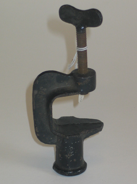 Zwartkleurige tafelklem van rondbreimachine.
