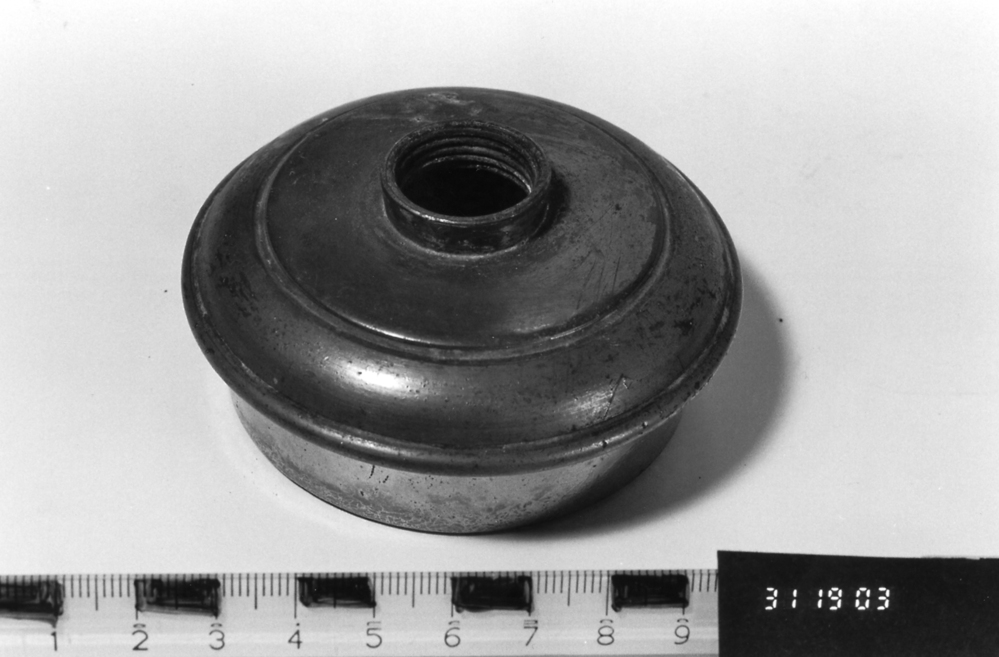 Theelicht, behorend bij theepot, grijs, opengewerkt, voorzien van florale motieven.