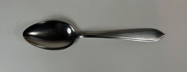 Tafellepel, metaal, twee groeven langs de in een punt uitlopende steel.