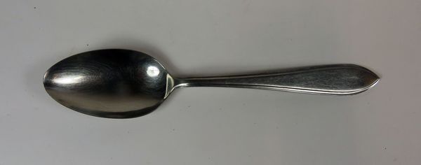 Tafellepel, metaal, twee groeven langs de in een punt uitlopende steel.