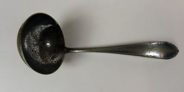Lepel, zijnde een Juslepel, voorzien van een bladerrank aan uiteinde heft.