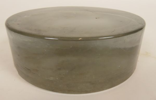 Rond en dik stuk glas, waarschijnlijk gebruikt als dekvenster.