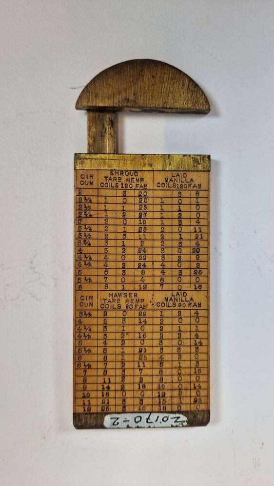 Schuifmaat, hout, met koperen zijkantjes. Gemaakt door de Fa. J&D Smallwood te Birmingham. Achterkant en voorkant tabel met diameter, gewicht en draagkracht van de draad. Schuif is van koper.
