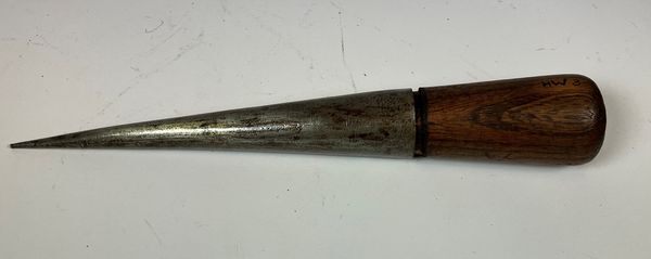 Metalen pen met houten verdikt boveneinde,met op het houten handvat een tekst in zwarteletters. Dit is een zogeheten marlspijker of marlpriem waarmee men touwen splitst. Ook wordt een marlspijker in de zeilvaart gebruikt voor het losmaken van vastzittende knopen en het losslaan van de bout van harpsluitingen.