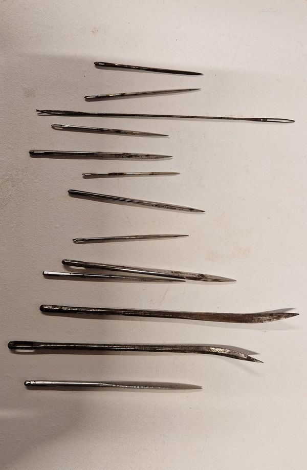Verzameling zeilnaalden, 13 stuks, gebruikt voor het in elkaar zetten en repareren van zeilen.