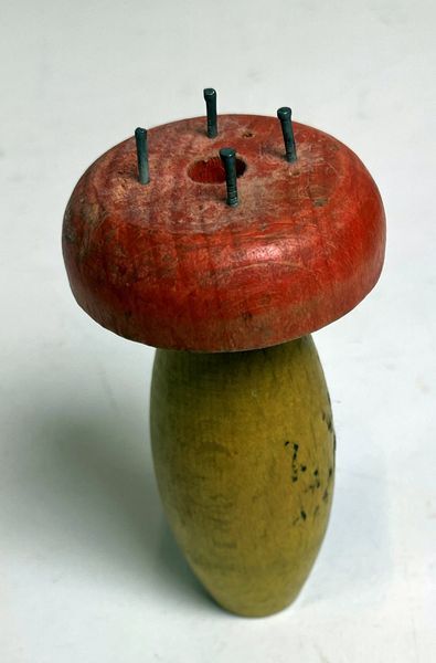Punnikklos in de vorm van een paddestoel met bruine steel en rode hoed.