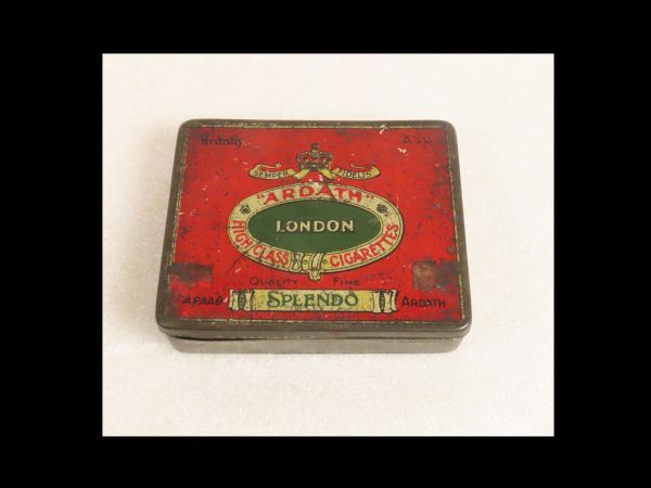 Roodkleurig blik met scharnierend deksel, met tekst op beide kanten van het deksel. Het blik bevat schoenspijkers.