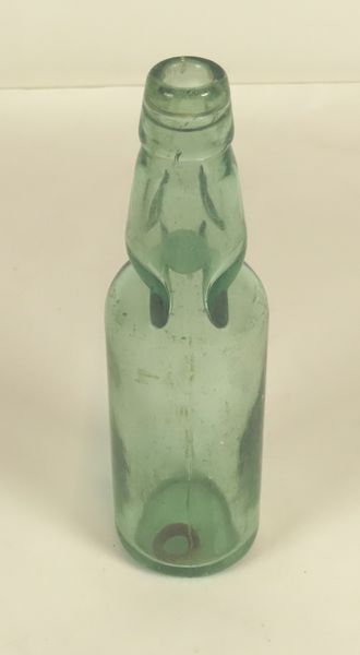 Flesje van blank lichtgroen glas met een versmalling in de hals. Het betreft hier een zogeheten herbruikbaar kogelflesje - ook bekend als gazeuse flesje - dat wordt afgesloten met een glazen knikker die zich in het flesje bevindt. Een rubber ringetje in de fles functioneert als kogelventiel. De knikker wordt op zijn plaats gehouden door ...