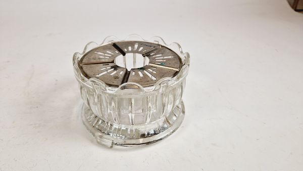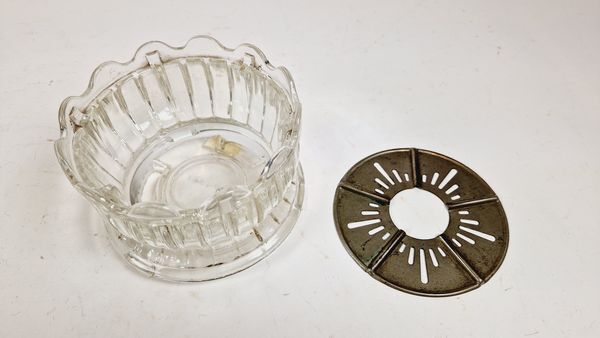 Glazen pot met een metalen deksel om thee op warm te houden. Binnen in kan een waxinelichtje gezet worden.