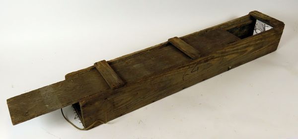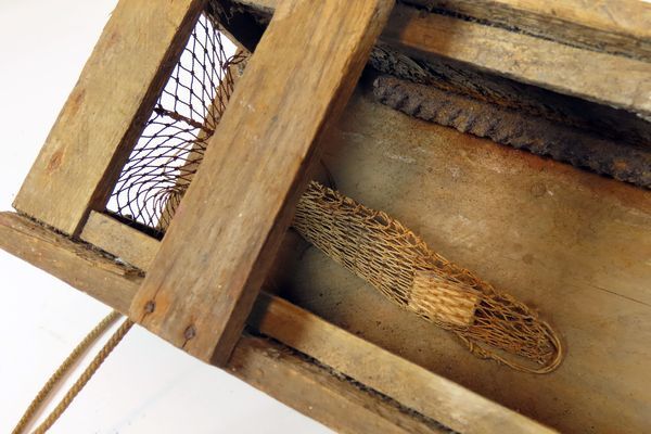 Houten kistje met losse houten deksel en fuikjes aan beide korte kanten voor het vangen van paling volgens de zogeheten kistjesvisserij. Het kistje is aan de binnenzijde verzwaard met twee stukjes betonijzer. Het aas werd in het kistje tussen de fuikjes gelegd.