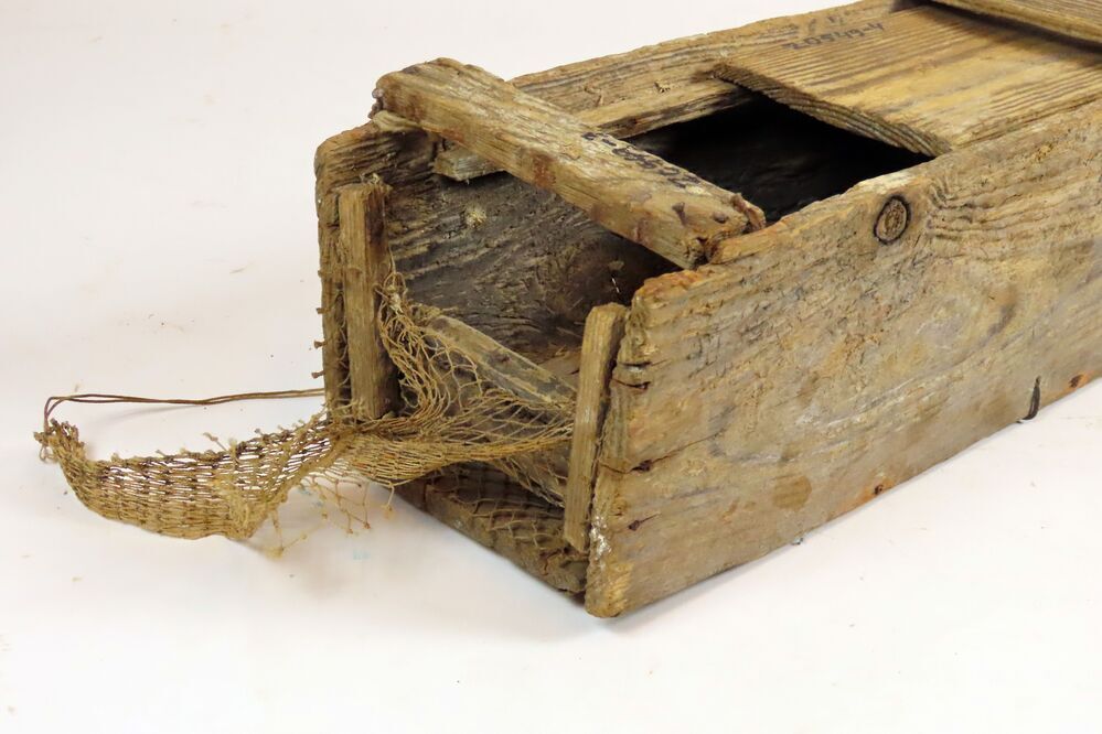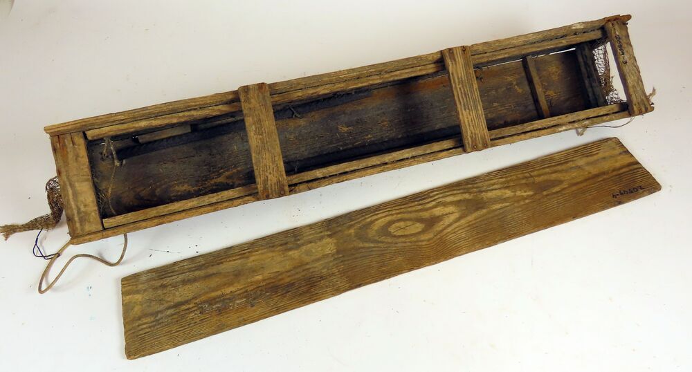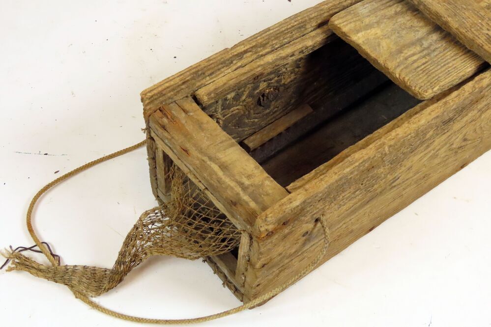 Houten kistje met losse houten deksel en fuikjes aan beide korte kanten voor het vangen van paling volgens de zogeheten kistjesvisserij. Het kistje is aan de binnenzijde verzwaard met twee stukjes betonijzer. Het aas werd in het kistje tussen de fuikjes gelegd.
