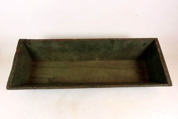Met groene verf geschilderde gereedschapsbak van timmerman.