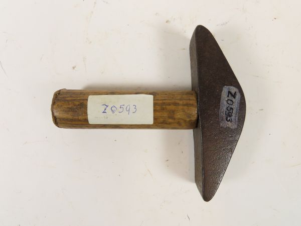 Haarhamer waarvan de kop is vastgezet met twee spijkers.