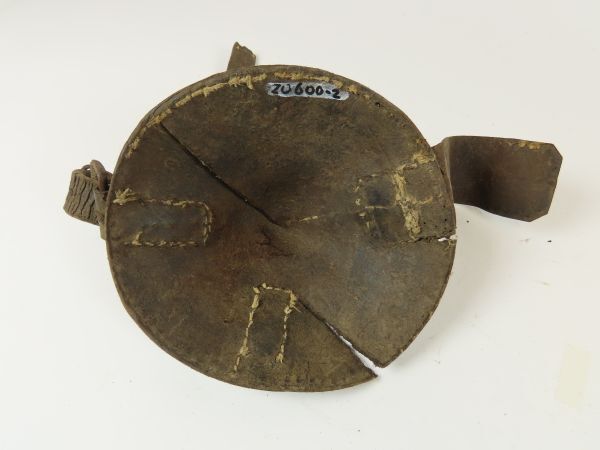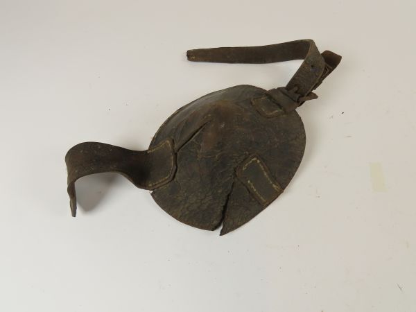Ronde leren blindkap gebruikt voor het afdekken van de ogen bij een paard dat aan de dorsrol of ander rondgaand werktuig liep. Voorkwam duizeligheid.