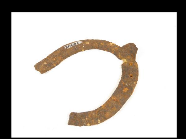 Hoefijzer met middenvoor een omgeslagen driehoekige punt, de zogeheten lip. gewoonlijk gebruikt voor het voorbeen van een paard.
