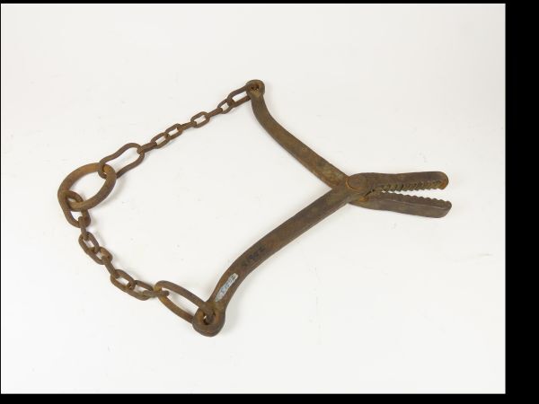 Zakkenklem of zakknijper voor het hijsen van zakken in de scheepvaart. De hijshaak wordt aan de ring bevestigd, waarna,door het gewicht van de baal, de tang stevig toeknijpt.