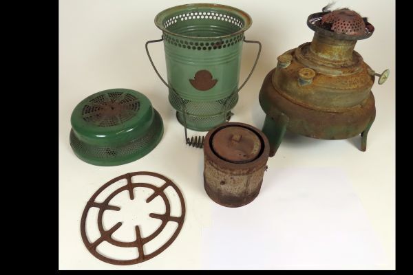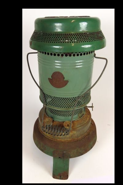 Groene, draagbare petroleumkachel, model Demon 70 van het merk Ditmar uit Oostenrijk.