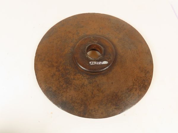 Dunne ijzeren schijf met een scherpe rand. In het midden is een verdikking aangebracht met een opening, zodat de schijf op een as kan worden gemonteerd. Deze schijf, zijnde een kouter of kantschaar van een ploeg snijdt de grond aan de zijkant los, zodat de zijkant van de voor niet afbrokkelt.