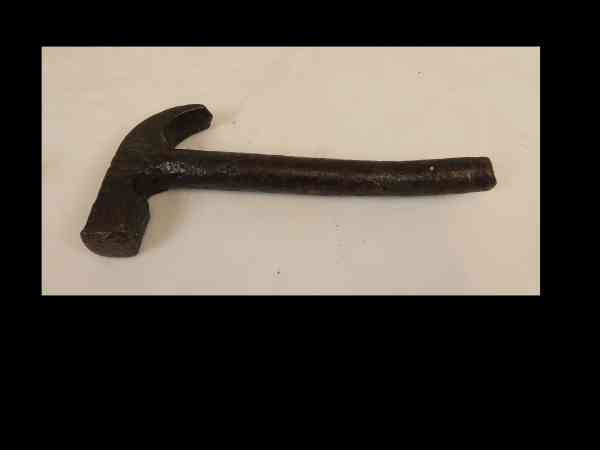 Geheel metalen hamer met aan de ene zijde een iets rondlopend slagvlak en aan de andere zijde een gebogen klauw zonder spleet.