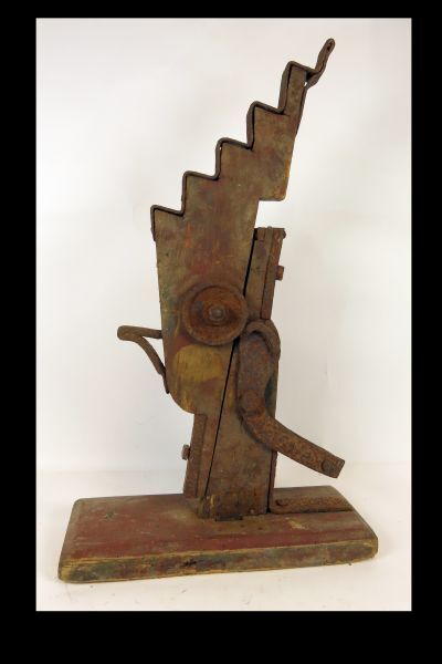Hulpmiddel voor het oplichten van een boerenkar of -wagen, bijvoorbeeld bij het vervangen van een wiel of het smeren van de assen. Het geheel is gemonteerd op een houten voetplaat. Voor gebruik bij karren/wagens van verschillende hoogtes zijn er in het hefdeel trapsgewijs diverse niveaus aangebracht. De hefboom voor het omhoog brengen van een kar/wagen ...