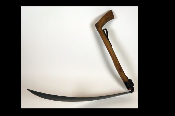 Kleine zeis, ook wel aangeduid als zicht, met houten handgreep en leren riempje voor de wijisvinger. Het lemmet is afneembaar. De zicht werd vooral gebruikt voor het maaien van granen.