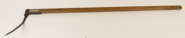 Houten steel met onderaan een puntige gekromde metalen haak, gebruikt bij het maaien van koren. Deze pikhaak wordt ook wel aangeduid als berhaak of mathaak.