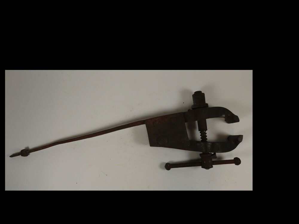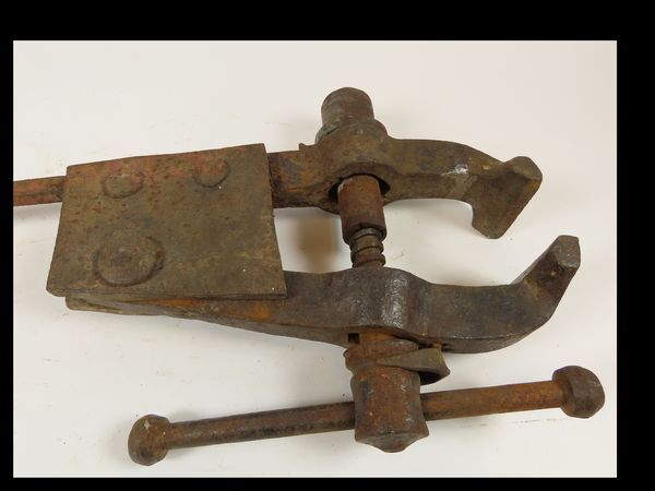 Stalen bankschroef op voet.