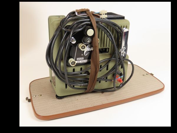 Projector incl. aansluitsnoer voor 8mm smalfilm in afsluitbare transportkoffer.