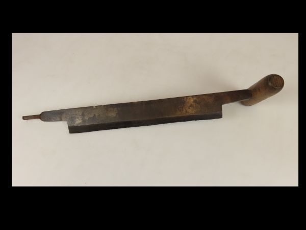 Schaaf van een kuiper, zijnde een haal- of trekmes, met oorspronkelijk twee houten handvaten.