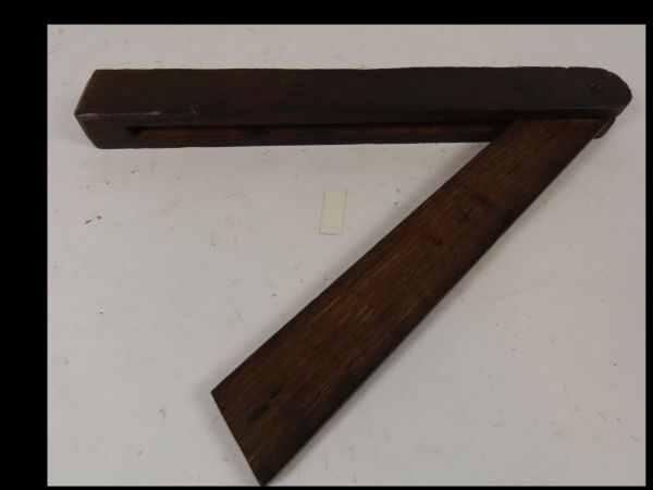 Inklapbare houten haak, zwei- of zwaaihaak, voor het meten en overbrengen van hoeken.