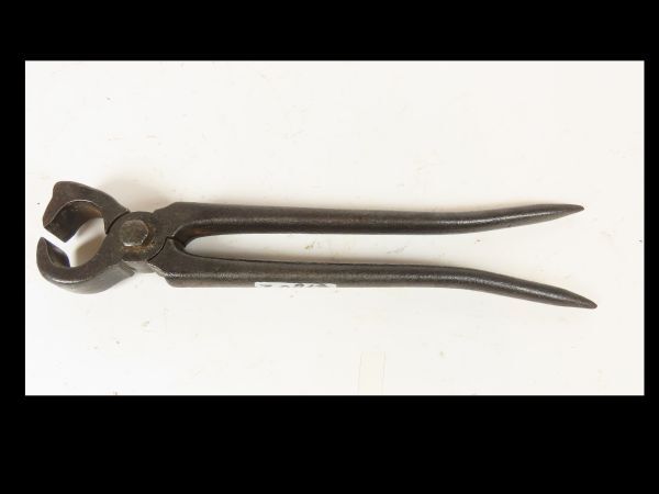 Metalen tang, zijnde een nijptang met op één bek een uitstulping, bedoeld spijkers uit hout te trekken.