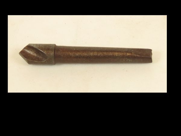 Souvereinboor. Op cilindrische schacht korte, brede cilinder, eindigend in kegelvormige punt met boorgroeven. Word gebruikt om ondiepe gaten te boren, zodat schroefkoppen in het materiaal verzonken kunnen worden.