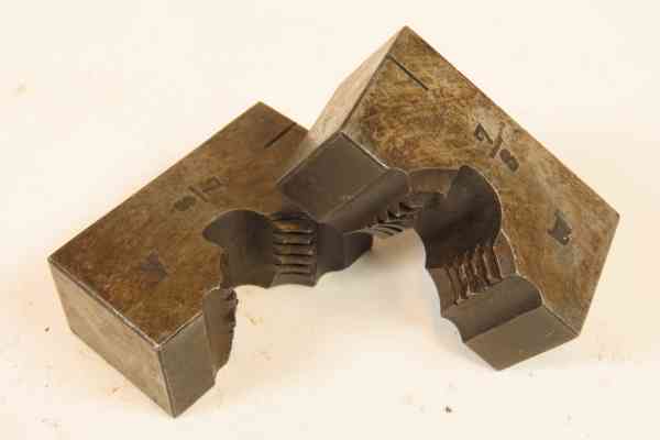 Gehard stalen blokje met een van schroefdraad voorzien gat, waarmee men uitwendige schroefdraad kan snijden.