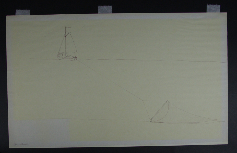 Tekening van botter met sleepnet.
