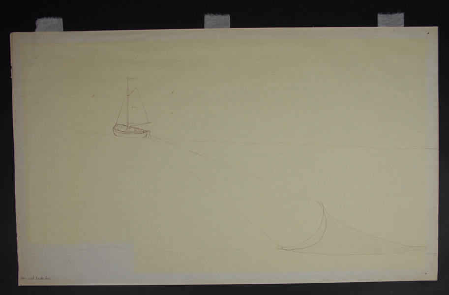 Tekening van botter met sleepnet.