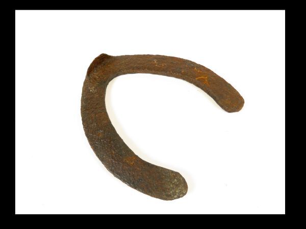 Hoefijzer met middenvoor een omgeslagen driehoekige punt, de zogeheten lip, gewoonlijk gebruikt voor het voorbeen van een paard.