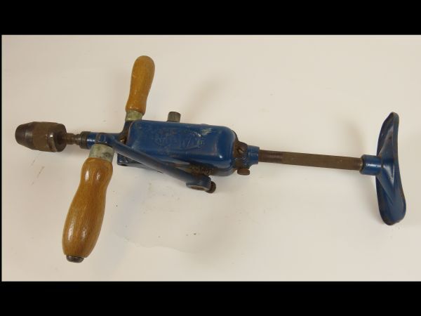 Boormachine met handbediening. Machine kan met de borst worden aangedrukt.