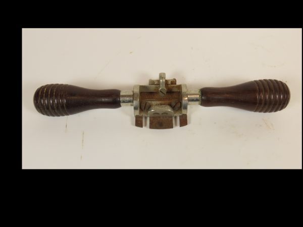 Schaaf, zijnde een vlakke schraapschaaf met houten handgrepen.