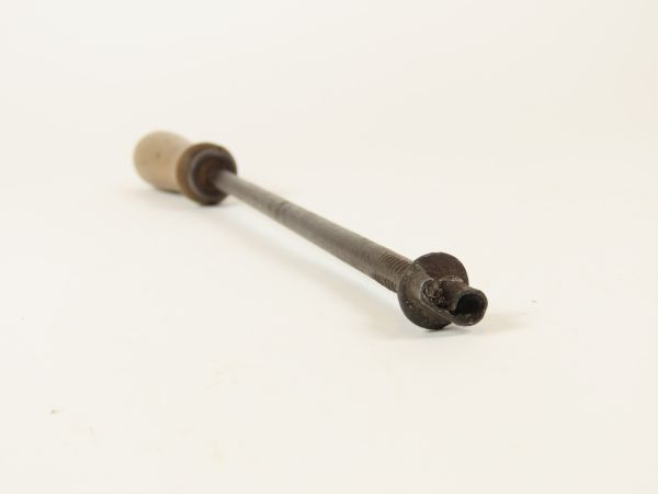 Een zelfgemaakt merk- of brandijzer met het cijfer 6 voor het merken van objecten. De steel bestaat uit een lange spijker die in een houten handvat is geslagen. Het handvat is bij de steel verstevigd met een metalen bandje. Het cijfer 6 is op de kop van de spijker gesmeed/gesoldeerd.