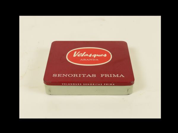 blik met roodkleurig scharnierend oversluitdeksel, met op het deksel merknaam.