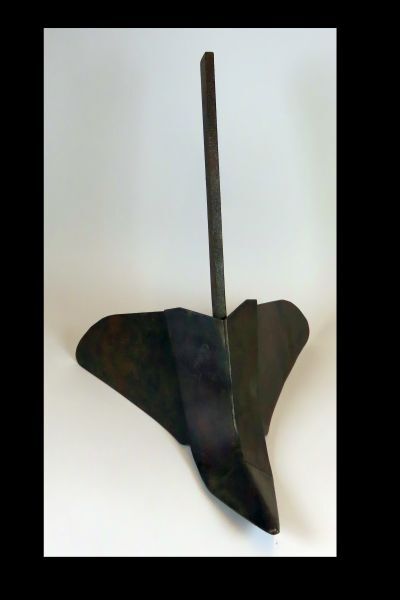 Voet van een aanaarder, ook wel aanaardploeg genoemd, met verstelbare bladen. Dit type ploeg werd en wordt gebruikt voor het aanaarden van aardappelen. Door het verstellen van de breedte van de scharnierende bladen kan de hoogte van het bed - de rug - worden bepaald.