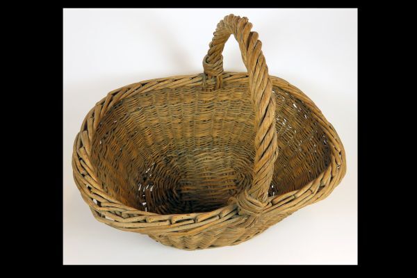 Grote mand met draagbeugel van gevlochten wilgentenen.