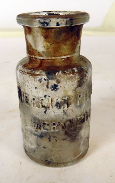 Rond glazen flesje voor biergistpillen van de firma Verweij.