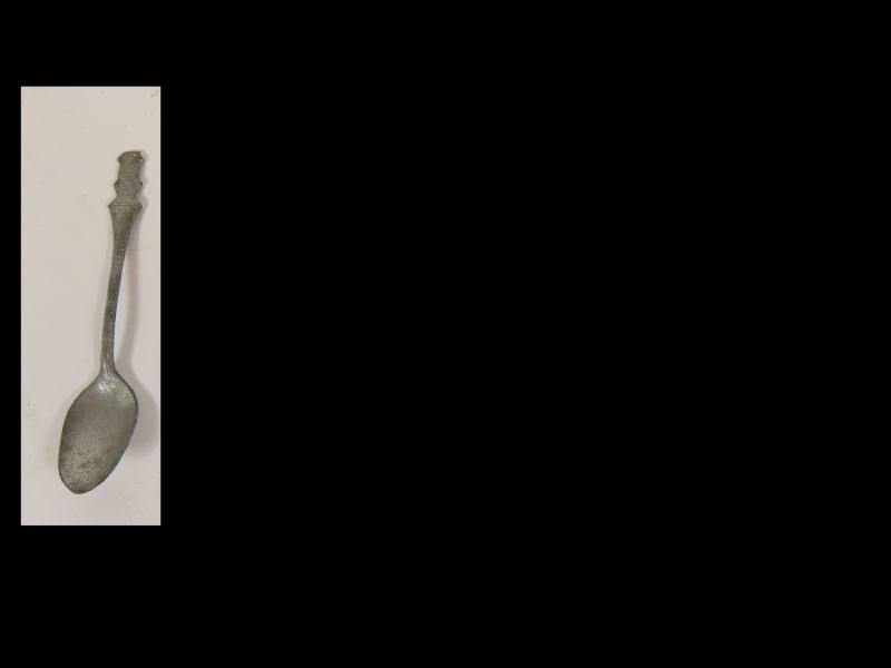 Lepeltje met bovenop een molen. De steel is geribbeld.
