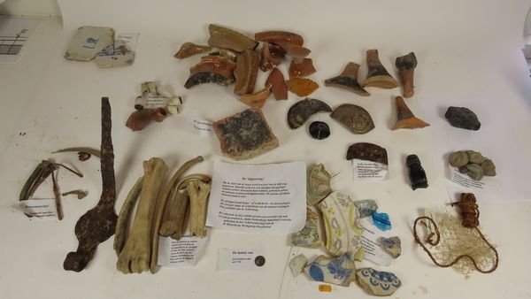 Scherven, glas, botten, pijpekoppen,beenderen, ijzerwerk