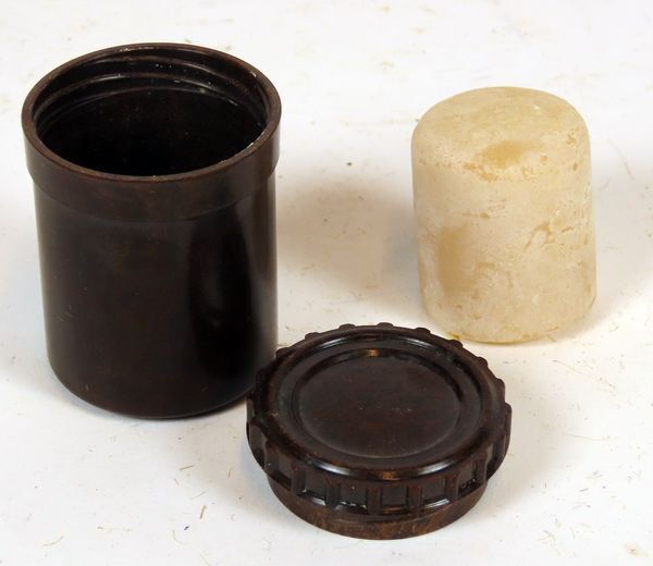 Cilindervormige zeepdoosje met schroefdeksel voor scheerzeep incl. stukje scheerzeep.