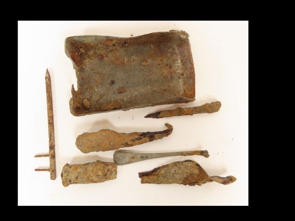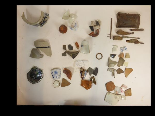 Aardewerk, diverse, glas en metalen objecten. Vondstnr. MZ 19 Molendijk bij Tramdijk Zwartewaal