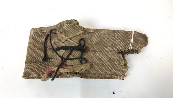 Rond plaatje met kleine putjes, bevestigd op een textiele band met aan de achterzijde 2 naalden, gebruikt om zeilnaald door zeildoek te duwen. Dit hulpmiddel is ook bekend als zeilplaat of zeilhand.