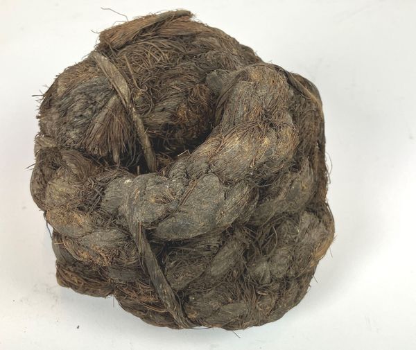 Vezeltouw , opgerold, gebruikt in scheepvaart voor het dichten van kieren.