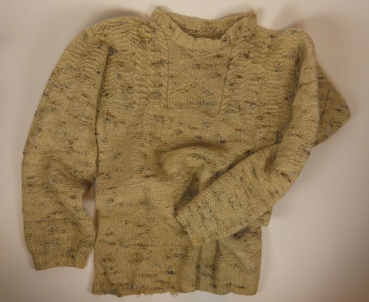 Wollen trui, wit gemeleerd.